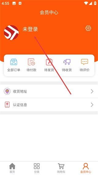 1、进入【会员中心】后,若页面显示【未登录】状态,可点击页面上的标识区域来启动登录流程。