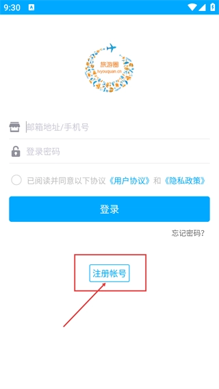 1、进入【旅游圈】后,先阅读【用户隐私政策】,确认无误后点击【同意】按钮,就能进入软件的后续操作流程。