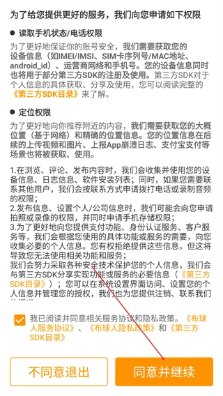 1、阅读权限申请说明,勾选已同意相关协议后,点击【同意并继续】按钮,即可授权权限并进入后续流程。