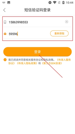 2、在【短信验证码登录】页面,填写号码及获取的验证码,确认已勾选协议后,点击【登录】按钮即可完成登录。