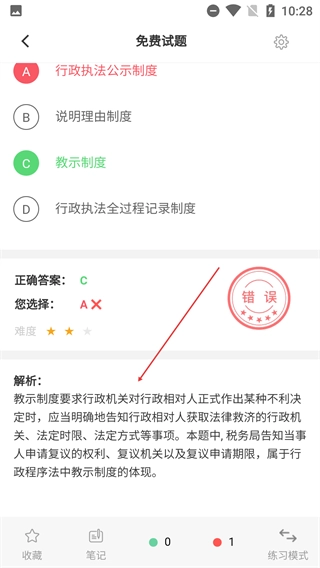 4、提交答案后,可查看【正确答案】与【解析】,还能看到自己的作答结果,方便了解对知识点的掌握程度。