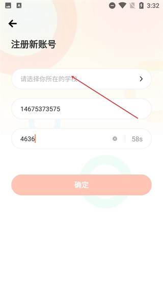 3、注册新账号的步骤如下:首先选择所在学校,接着填写账号,然后获取验证码,输入验证码后点击【确定】按钮,即可完成注册。