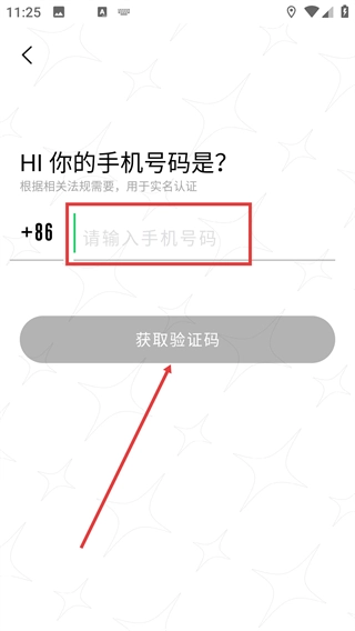 2、进入账号认证页面后,先输入号码,接着点击【获取验证码】,完成后续的验证步骤就能登录成功。