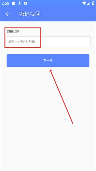3、进入密码找回页面后,输入对应的账号或邮箱信息,接着点击“下一步”按钮,以推进密码找回流程。
