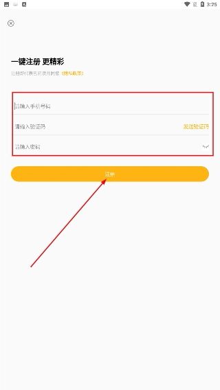 4、如果选择注册,在【请输入号】处填写信息后点击【发送验证码】,接着输入验证码和密码,最后点击【注册】按钮即可完成账号创建。