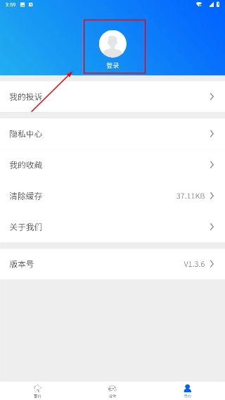 2、进入个人相关界面后,找到并点击顶部的【登录】按钮,即可进入账号登录流程。