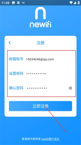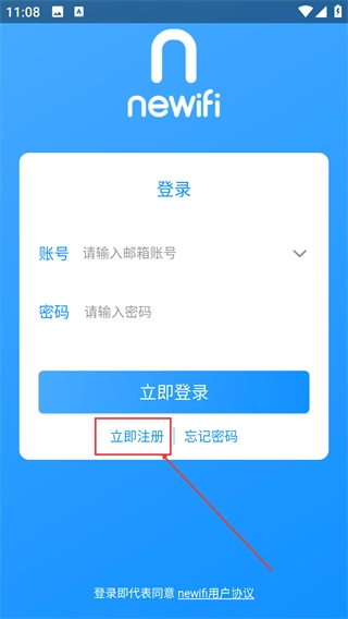 2、在【newifi】登录页面,要是还没有注册账号,点击【立即注册】按钮,就能进入注册流程。