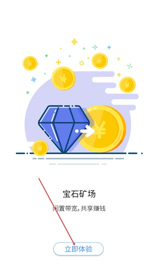 1、在【宝石矿场】页面,点击【立即体验】按钮,即可进入后续的账号操作环节。