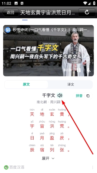3、点击详情页面右上角的功能图标,即可跳转至包含《千字文》讲解的关联内容页面,以便查看拓展信息。