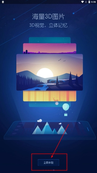 1、当界面呈现“海量3D图片”时,点击底部的【立即体验】按钮,就能进入对应的功能模块。