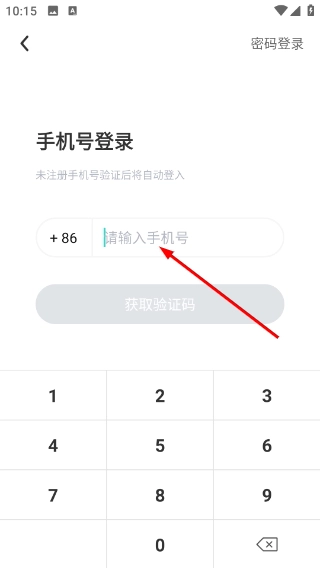 2、进入账号登录页面后,在【请输入账号】的输入框中填写对应号码,填写完毕后点击【获取验证码】按钮。