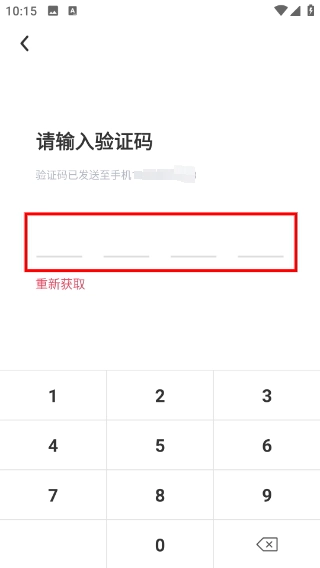 3、在验证码输入页面,把收到的验证码填写到输入框中,要是没收到验证码,可以点击【重新获取】按钮再次获取。