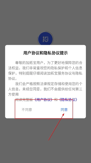 1、当出现【用户协议和隐私协议提示】时,需要先阅读相关协议内容,再点击弹窗里的【同意】按钮,完成协议确认后才能继续进行后续的软件操作流程。