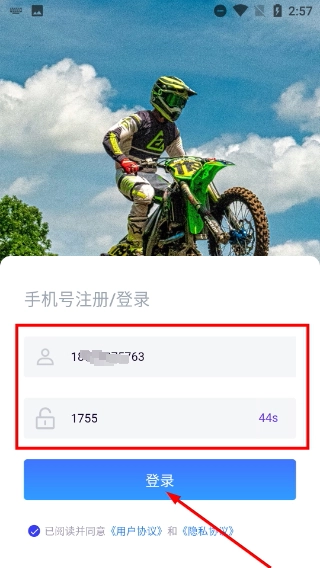 2、进入【账号注册/登录】页面,填写对应的账号和验证码,勾选相关协议后点击【登录】按钮,即可完成账号验证。