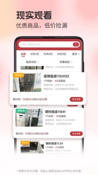 2.强大的搜索功能:用户能够借助关键词、价格区间、地理位置等多种途径开展搜索,迅速定位到满足自身需求的拍卖项目。