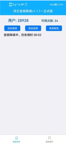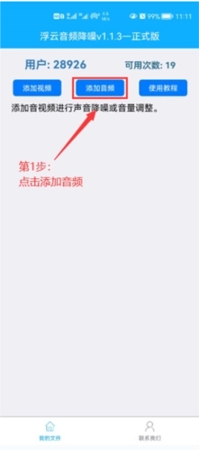 1、启动浮云音频降噪软件的手机版本,点击添加音频的按钮,开展音频选择操作;