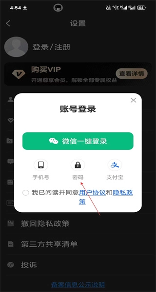 2、进入设置页面后点击登录注册选项,会弹出账号登录窗口,其中提供了微信一键登录、号等多种登录方式可供选择。