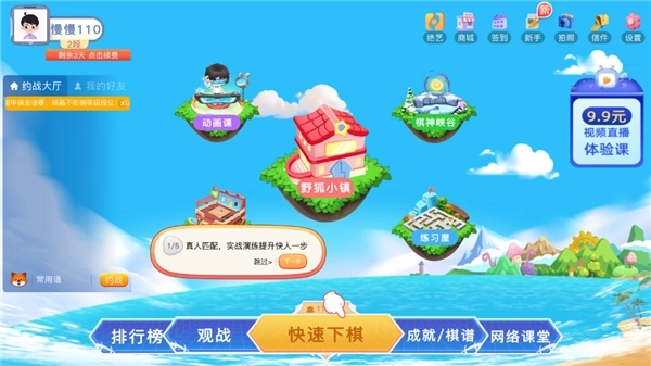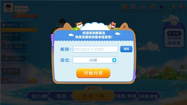 2、快速对弈界面完成重构升级,依托数千万量级的用户基础,实现了支持用户自定义选择对弈模式,并保障全时段内的快速匹配需求