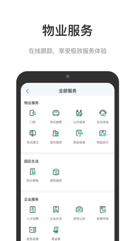5、进入全部服务板块,即可快速体验各类物业服务与企业服务,还能在线招聘人才、认证企业资质。