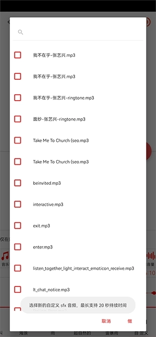 2、选择音频文件后,在添加声音效果界面中点击自定义(由于效果列表里没有水下效果,所以用户需要先在手机上安装一个水下效果)