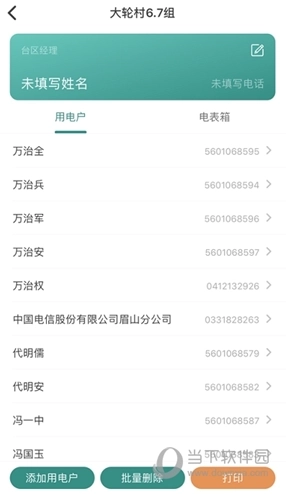 支持查看对应用电用户及电表箱信息,同时支持查看、添加和删除用户信息。