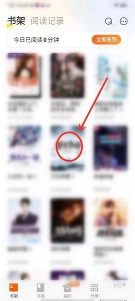 1、打开书架界面,点击要阅读的书籍。