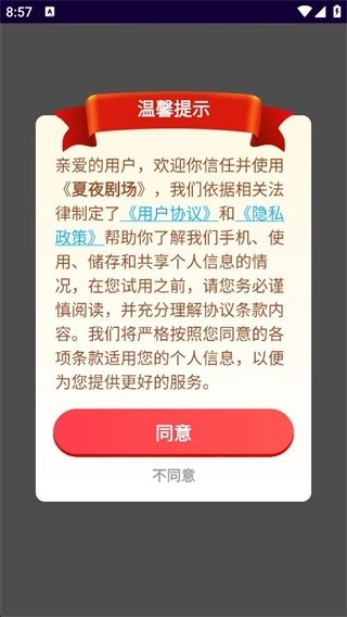 1、接着安装夏夜剧场应用程序,点击“同意”按钮进入主页。
