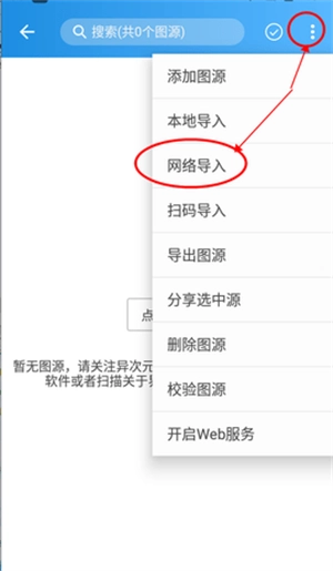 2、在图源管理界面的右上角,点击带有三个点图标的更多按钮,然后选择【网络导入】功能