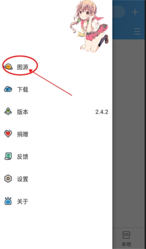 1、打开应用进入主页后,点击左上角的三条横线菜单图标,选择【图源】选项进入配置页面