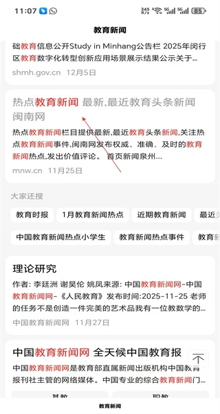 1、启动软件后,进入教育新闻搜索界面,浏览各类教育资讯清单,能够挑选感兴趣的资讯进行查看。