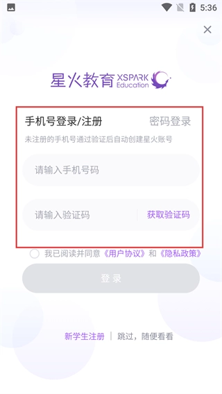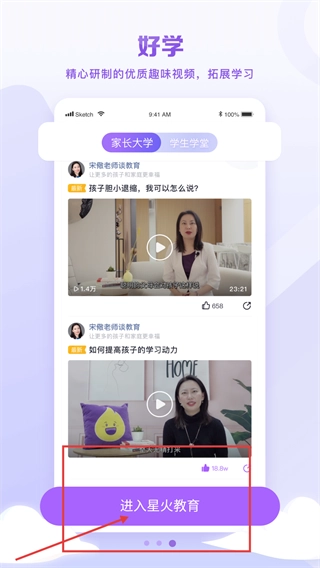 1、在“好学”页面,点击【进入星火教育】按钮,即可进入星火教育的登录界面。