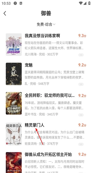 3、在御兽分类的作品列表中,挑选你感兴趣的书籍,点击对应的作品即可进入详情页面。
