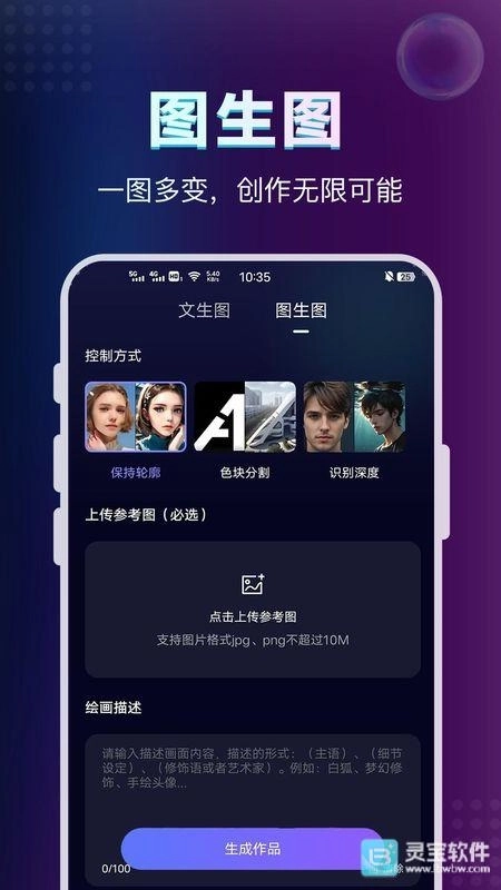在AI绘画鱼功能里,你能直接上传想要控制的参考图片,以此生成对应的创作方向,让AI模仿该风格进行绘制,尽情体验多种不同的主题内容吧。