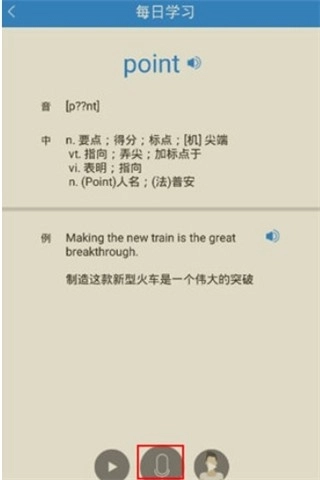 3、点击播放键试听单词,然后点击录音键开始录音。