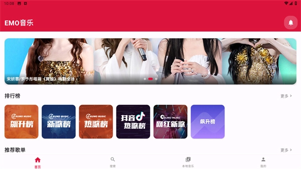 1、首先进入界面后,会看到有排行榜和推荐歌单可供选择聆听;