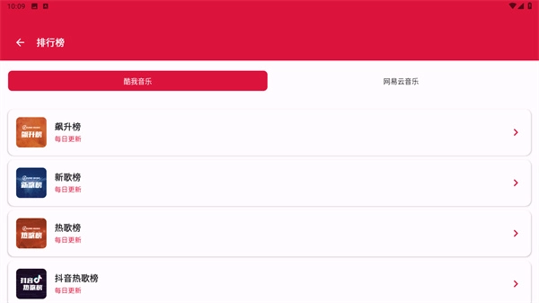 2、然后点击“更多”,就能查看酷我音乐和网易云音乐的各类排行榜单了。