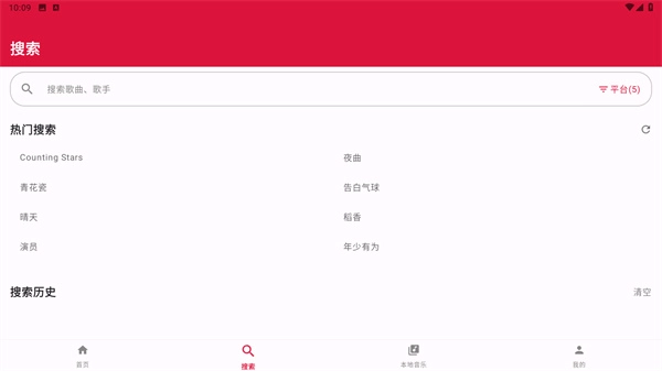 3、接着点击下方的搜索按钮,查找自己喜爱的歌手或歌曲;