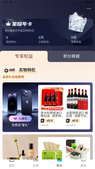 3、接着在积分板块中,用户能够利用已积累的积分以及专属权益,兑换各类特权物品。