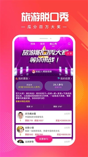 《燃旅视频》是一款实用且备受旅游爱好者青睐的短视频分享平台,平台上汇集了各类旅游主题的短视频,专注于记录旅行中的美好瞬间,涵盖了旅途里的奇景风光、刺激体验以及网红美食打卡等内容。此外,平台还具备丰富的实用功能,系统会实时更新并推送热门旅游攻略,让用户无需再花费时间自行搜索。