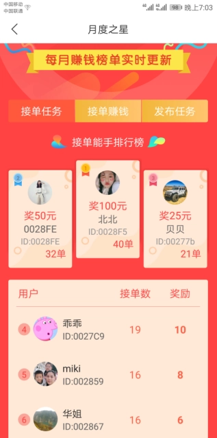 5、徒弟自注册之日起一周内,完成100单以上且每单金额100元以上,同时完成5天的取出操作,即可获得10元出师奖。