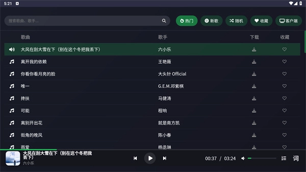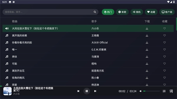2、无论什么类型的歌曲都能在这里轻松找到,用户只需输入关键字或名称,就能获取对应的歌曲资源和内容。
