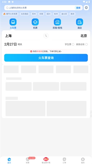 2、配备了智能抢票功能,系统一旦监测到有火车票余票,便会立即弹窗提醒用户进行抢购,从而有效提升购票的成功率。