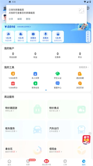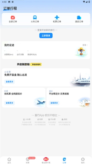 1、用户可在主页选择希望乘坐的出行方式,涵盖飞机、火车等选项;