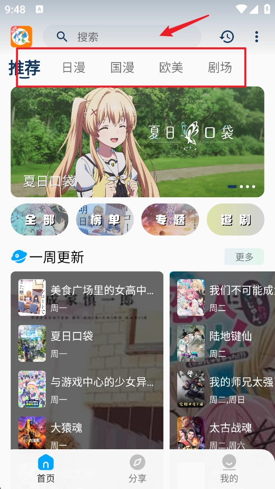 2、如图所示,在首页能够借助分类筛选功能,或者直接输入关键词来查找目标动漫作品。