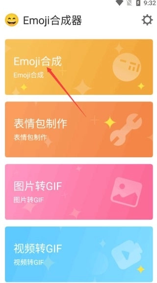 从本站安装Emoji合成器,打开应用后就能看到四大核心功能板块,点击【Emoji合成】选项即可开启创作之旅。