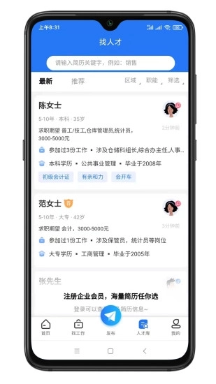 注册成为会员后,您可以发布相关职位信息。即便您不在电脑旁,也能不受时间和地点的限制,随时进行人才招聘。