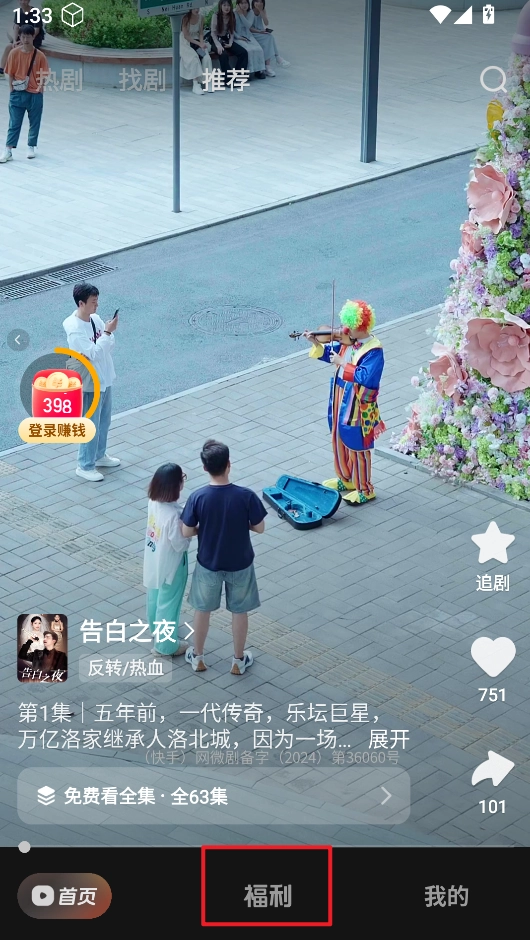 3、在首页底部导航栏找到“福利”入口并点击,即可进入活动中心页面。