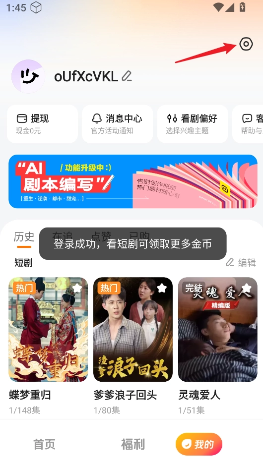 2、通过本平台账号或第三方账号登录喜番短剧,保证账户处于正常状态。