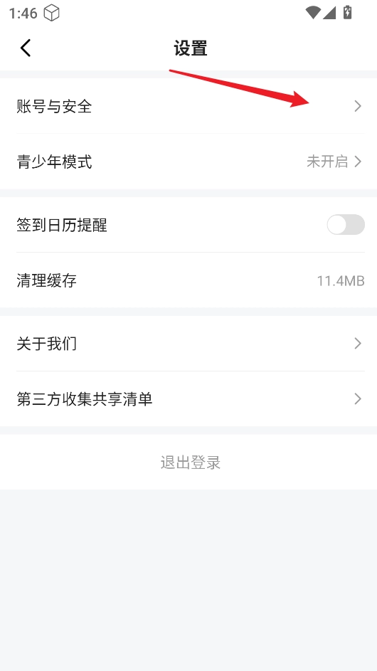 4、在设置列表里找到“账号与安全”这一选项并点击,然后查看与之相关的账户信息管理功能。