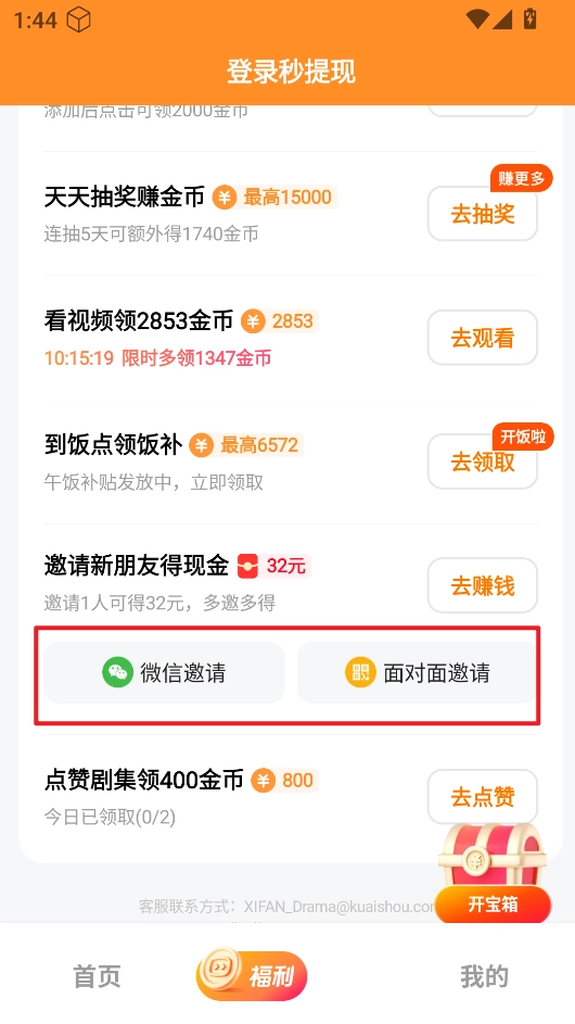 4、向下滑动找到日常任务板块,点击“邀请新朋友得现金”活动,接着通过“微信邀请”或“面对面邀请”分享链接,邀请成功就能拿到奖励。